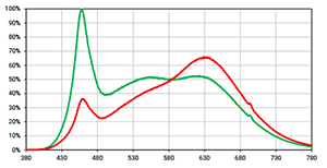 Diese sehr detailierten grafischen Darstellungen machen es uns leicht, ein 1 zu 1 Abbild von den grafischen Bilder (Spektren) in eine nutzbare PSPEC - Datei zu übertragen. Hier sind wir ebenfalls sehr nah an den realen Werten der Beleuchtung. Nach Eintrag der Leistungsdaten (je nachdem welche Größe an LED - Leiste genutzt wird) erhalten wir hier auch realistische Werte im LightComposer.