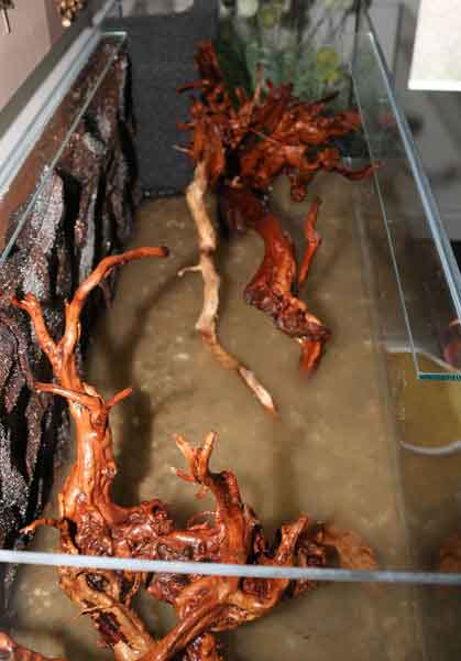 Die Rückwand wurde wie schon oft, von uns selbst gebaut.. klein und fein wurde diese nach dem Prinzip SandStorm Tanzania gebaut. Styropor, Abdeckfarbe und Sand kamen zum Einsatz! Struktur schneiden mit einem Heißdrathschneider und danach Farbe/ Sand und Epoxidharz zum versiegeln. Dieses kleine Projekt ging natürlich bedeutend schneller...